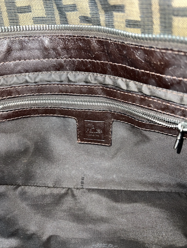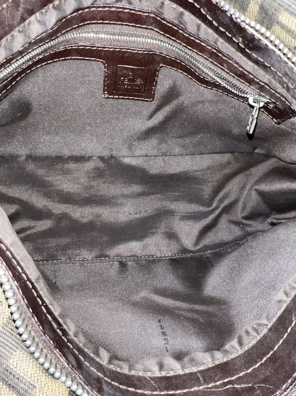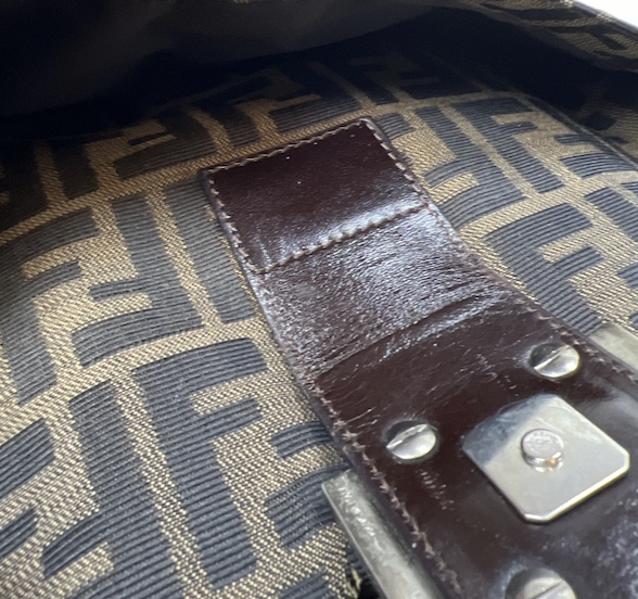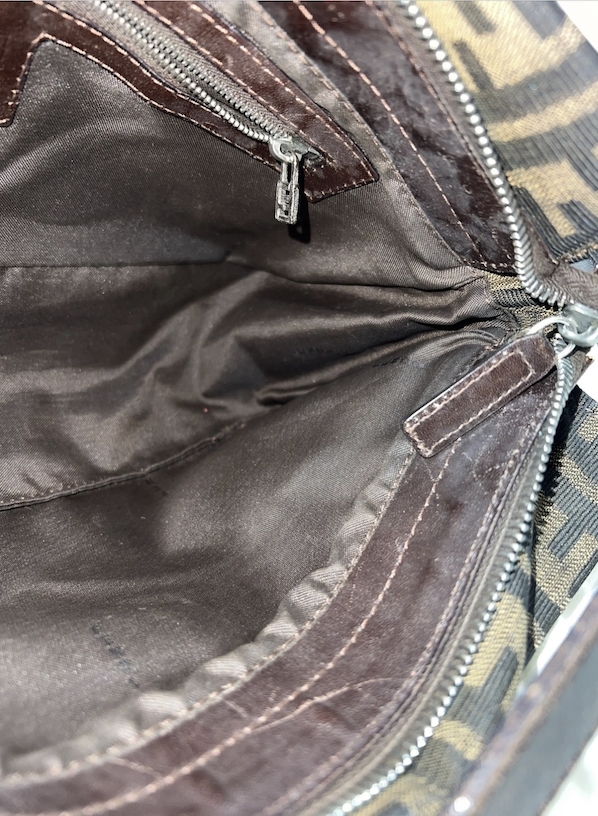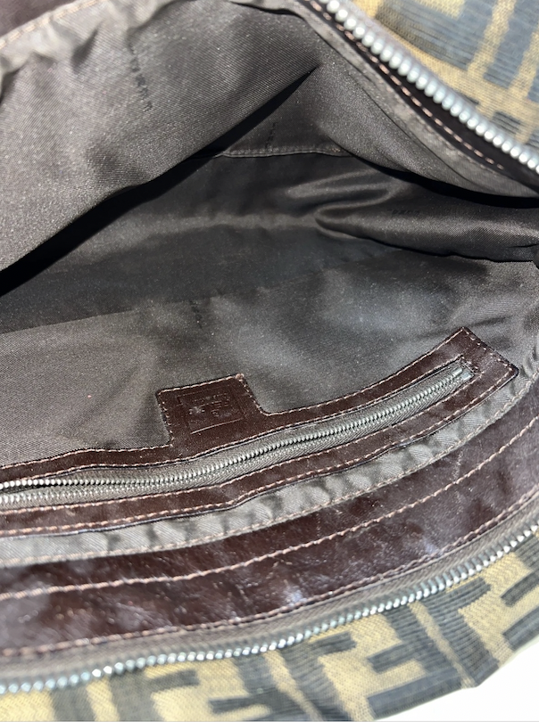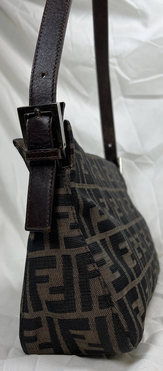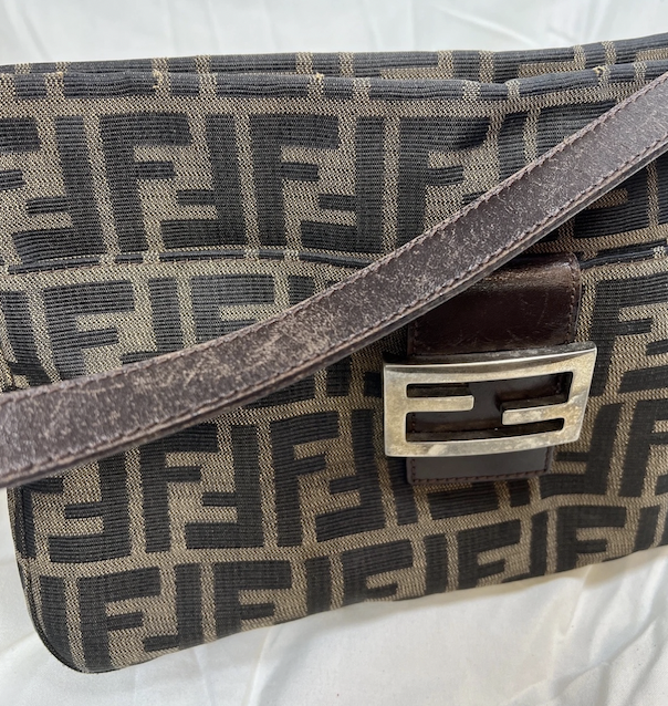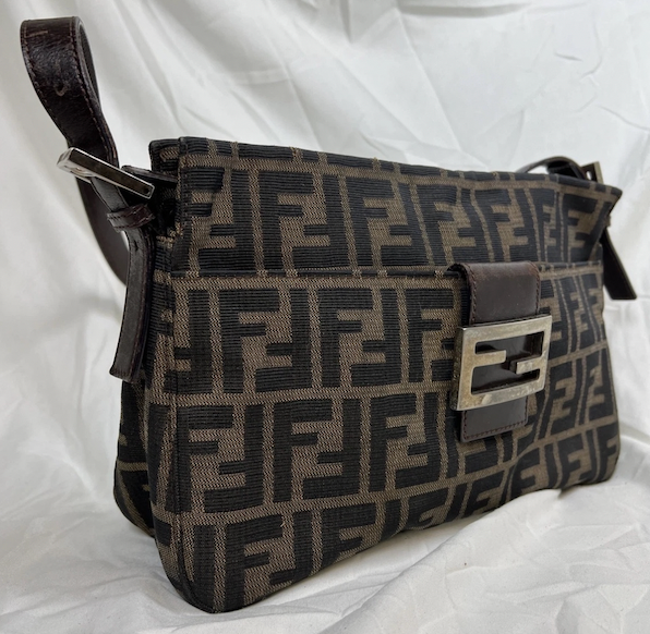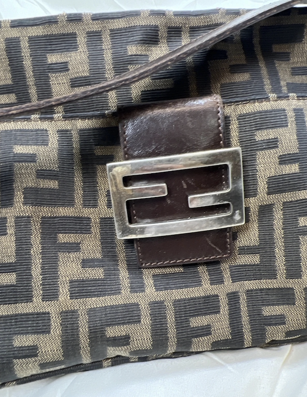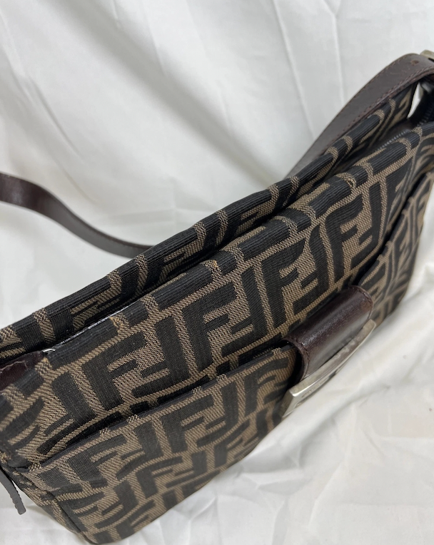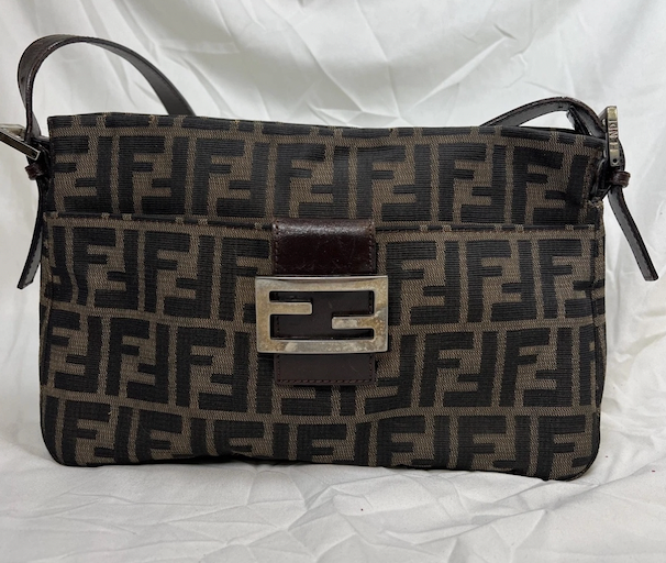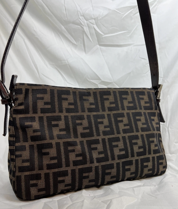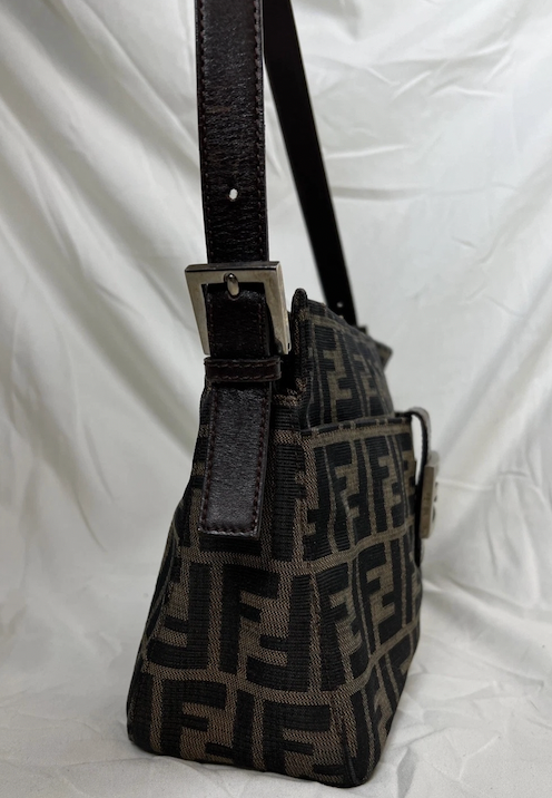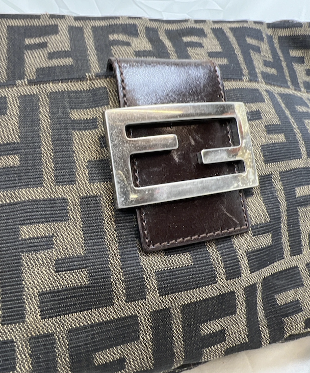 An icon of early 2000s fashion, the Fendi Zucchino Mama Baguette is the perfect mix of everyday ease and designer flair. Crafted in signature FF logo canvas with black leather trim and a polished silver-tone buckle, this vintage beauty carries just the right amount of nostalgia and style.